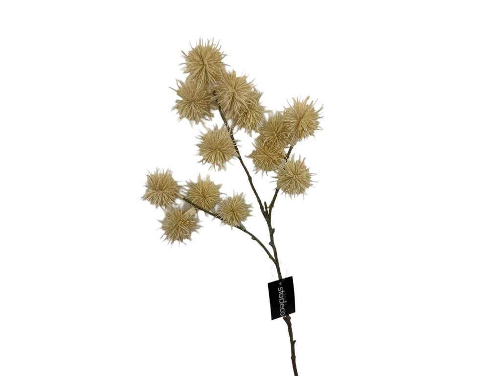 Dekorativní umělá akácie (Acacia) o délce 68 cm zaujme bohatě rozvětveným stonkem a kulovitými květy tvořenými jemnými paprskovitými vlákny. Teplý béžový tón působí přirozeně, jemně a snadno se kombinuje s dalšími přírodními dekoracemi.
