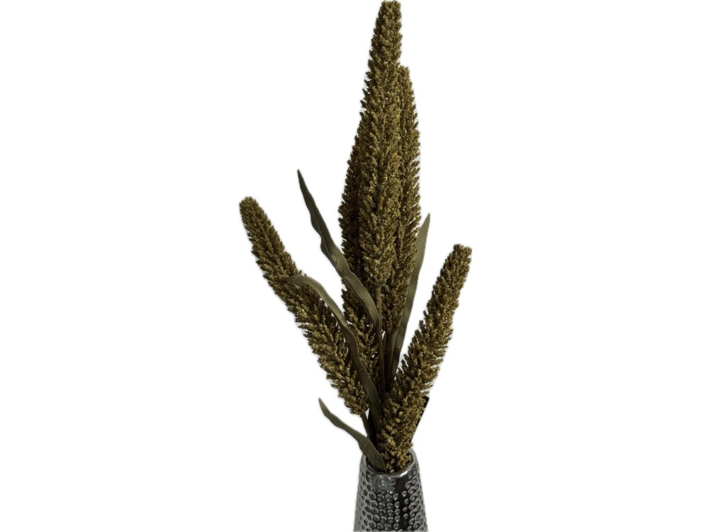 Více klasů na jednom stonku dodává větvi objem a zajímavou siluetu. Tlumené zelené listy přirozeně doplňují tmavou barvu květů a umožňují snadné začlenění do moderních, podzimních i celoročních aranžmá.