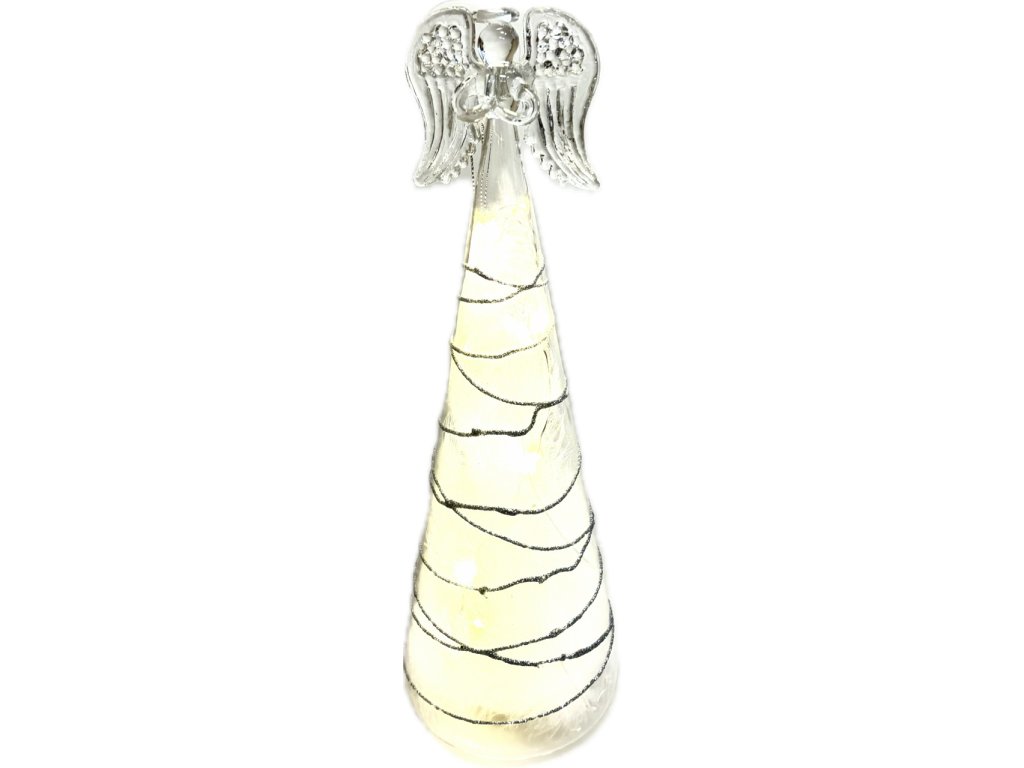 Anděl sklo svítící LED 9x28 cm vč. baterií