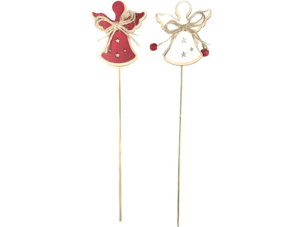 Anděl zápich dřevo 28x7 cm bílý/červený