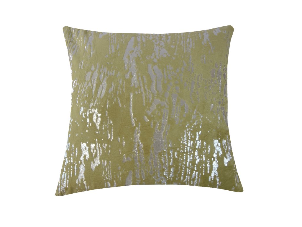 Dekorativní polštář o velikosti 45 × 45 cm zaujme výraznou kombinací zelené a stříbrné barvy, která působí luxusně a zároveň svěže. Povrch zdobí abstraktní vzor s metalickým efektem, jenž se při dopadu světla jemně třpytí a vytváří zajímavou hru odlesků.