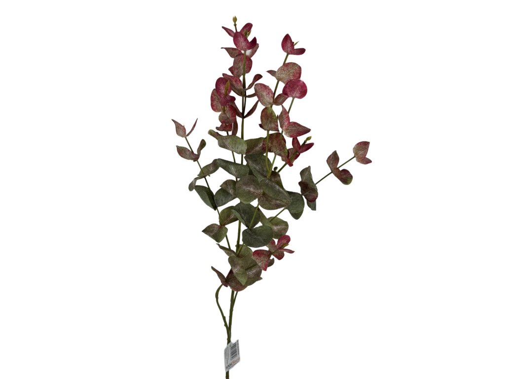 Umělý eukalyptus (Eucalyptus) o délce 95 cm v tlumeném zeleno-vínovém odstínu. Elegantní dekorativní větev s přirozeným vzhledem, ideální do moderních aranžmá.