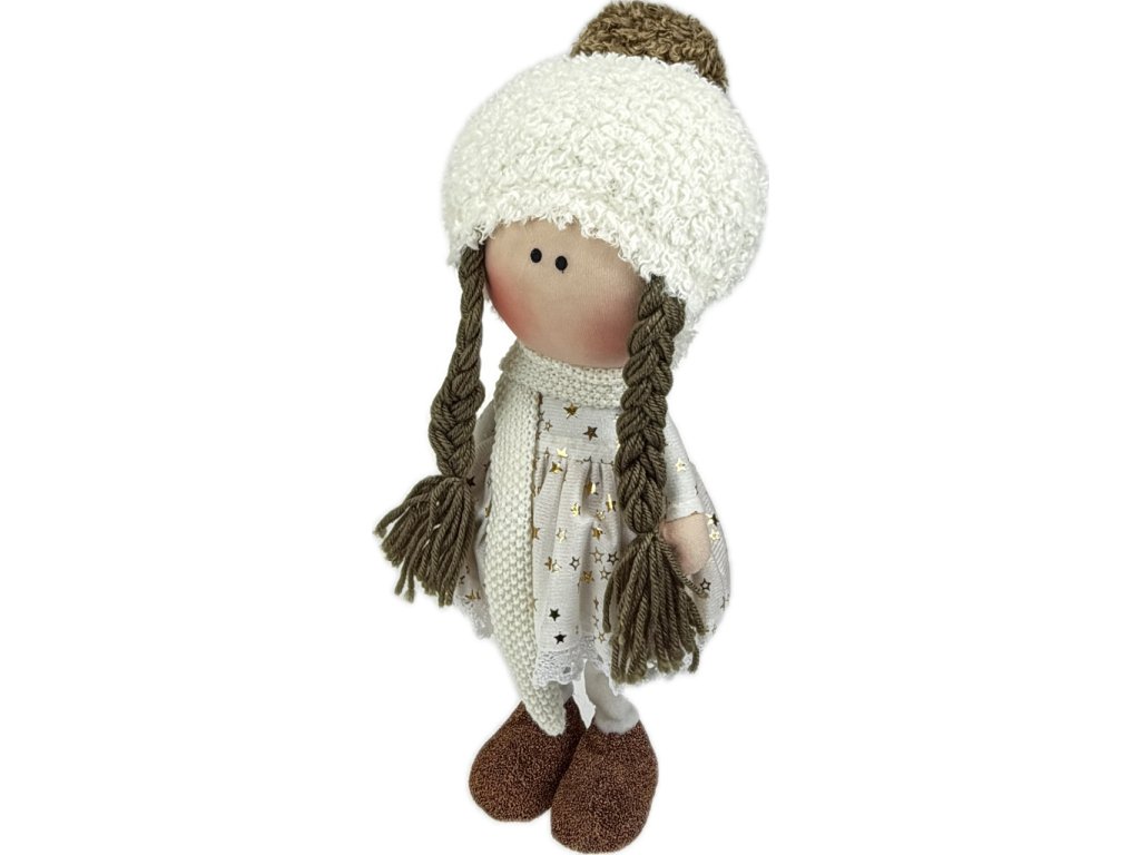 Holčička látka stojící s bílou čepicí 15x12x42 cm