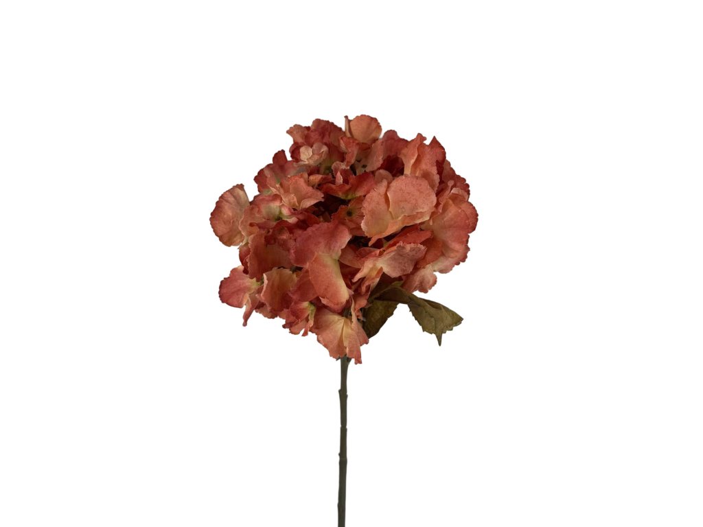 Umělá květina hortenzie o délce 80 cm v teplém korálovo-lososovém odstínu. Výrazná a elegantní dekorace, která dodá aranžmá hloubku i jemnou barevnost.