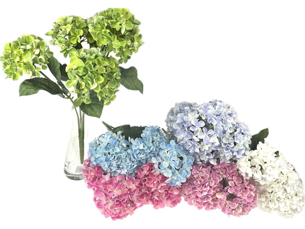 Hortenzie na stonku 42 cm vysoká s 5 hlavami květů (X5) v různých barevných provedeních