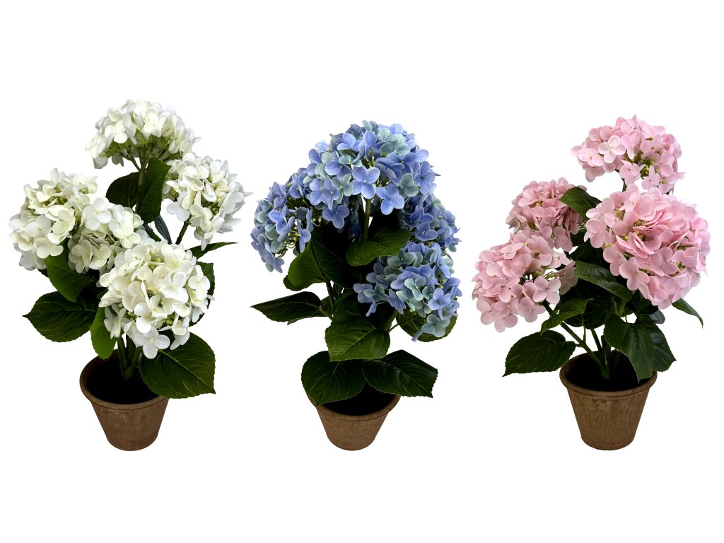 Hotenzie trs 55 cm LUX real touch, 5 květů + plastový květináč