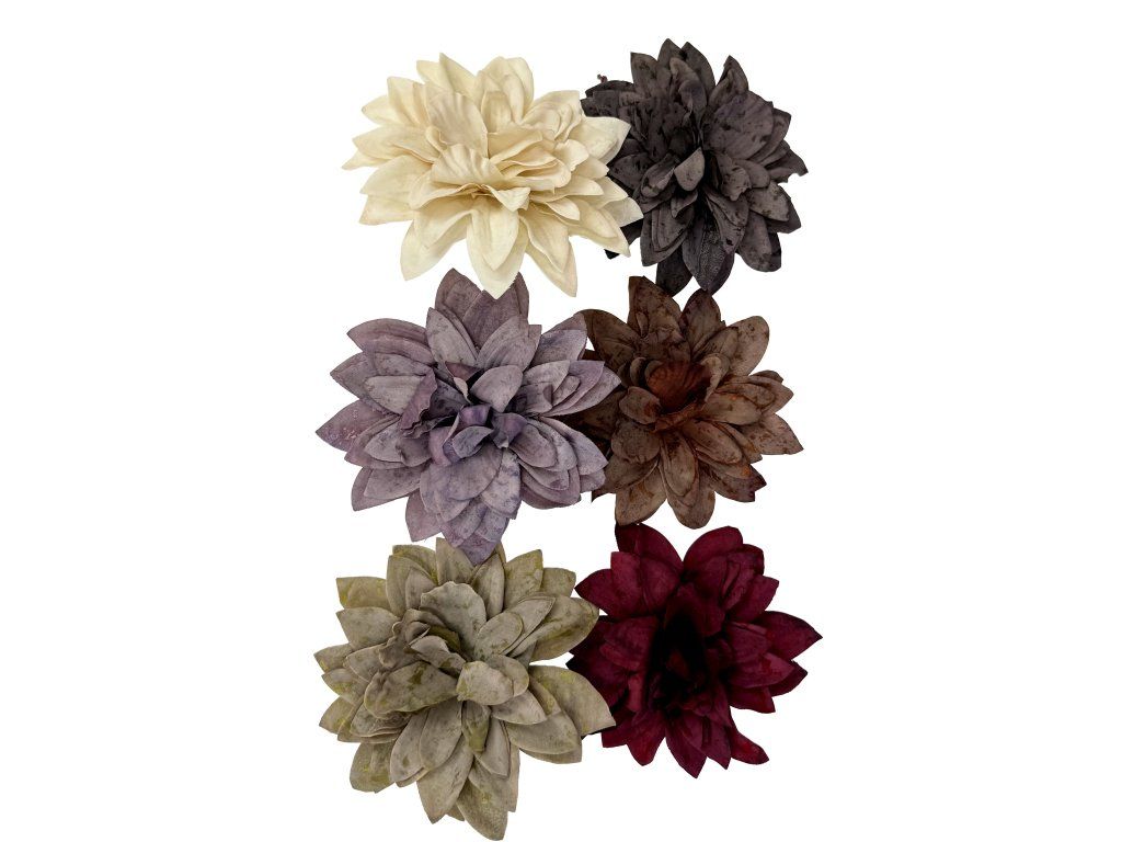 Hlava jiřiny DRY v mixu barev zaujme svým zajímavým vzhledem inspirovaným sušenými květinami. Každý kus má originální barevné zpracování, které dodává dekoraci jedinečný a přirozený charakter.