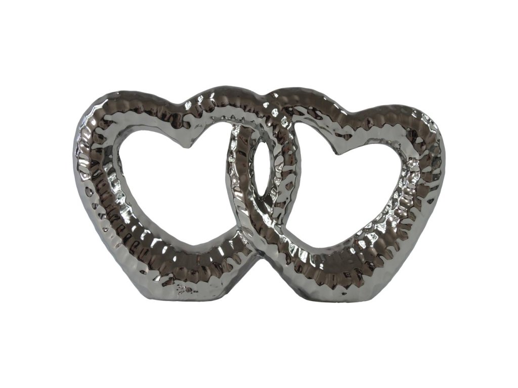 Keramická dekorace v podobě propletených srdcí ve stříbrném strukturovaném provedení. Elegantní symbol lásky a propojení, který dodá interiéru moderní a luxusní vzhled.