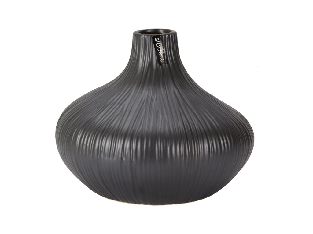 Keramická váza v elegantním černém provedení zaujme jemnou žebrovanou strukturou a moderním tvarem. Kompaktní velikost z ní činí stylový doplněk vhodný i do menších prostor.