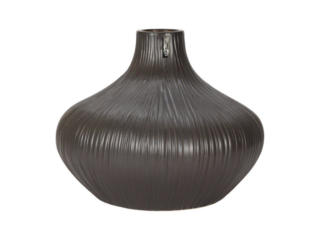 Keramická váza v elegantním černém provedení zaujme originální žebrovanou strukturou a nadčasovým tvarem. Jemný lesk a plastický povrch dodávají váze luxusní a moderní vzhled.