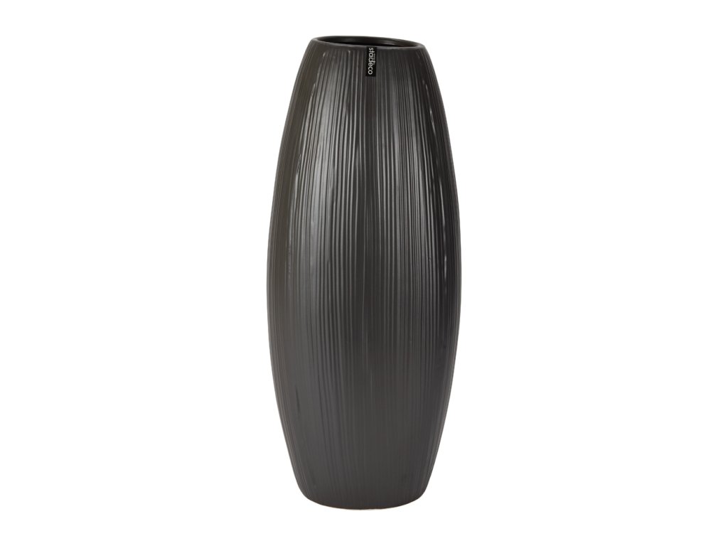 Keramická váza o výšce 46 cm v černém provedení s jemným vertikálním dekorem. Elegantní doplněk, který dodá interiéru svěží a nadčasový vzhled.