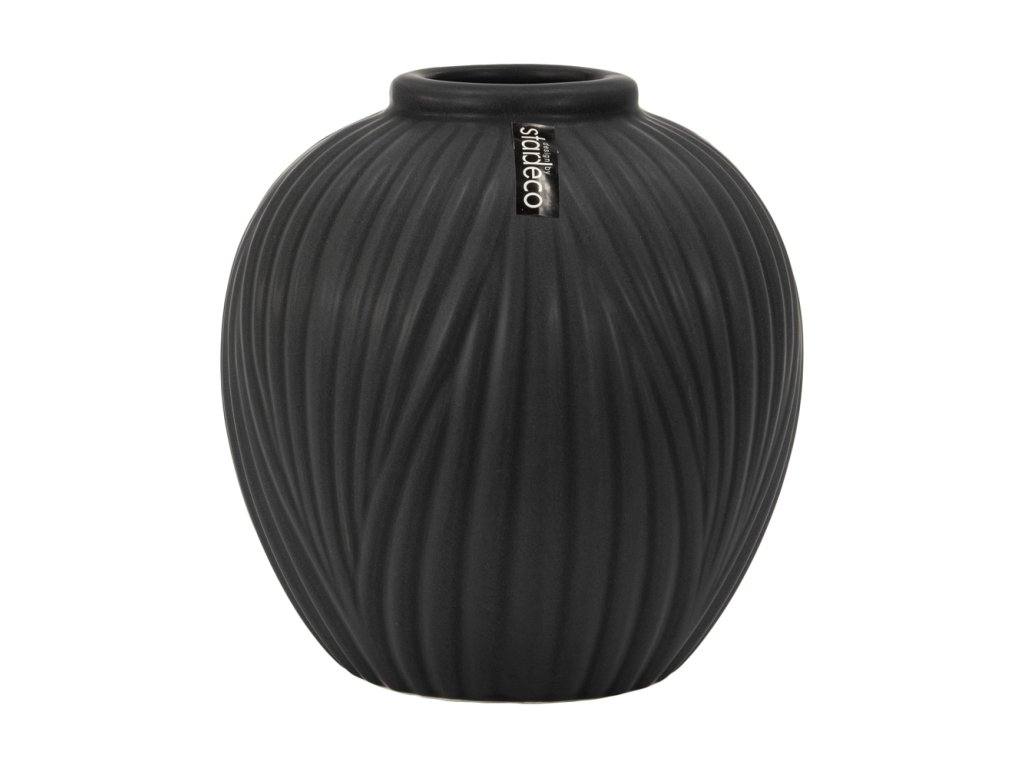 Keramická váza v matném černém provedení o výšce 18 cm. Elegantní doplněk s jemně plastickým vlnitým dekorem, který působí moderně a nadčasově.
