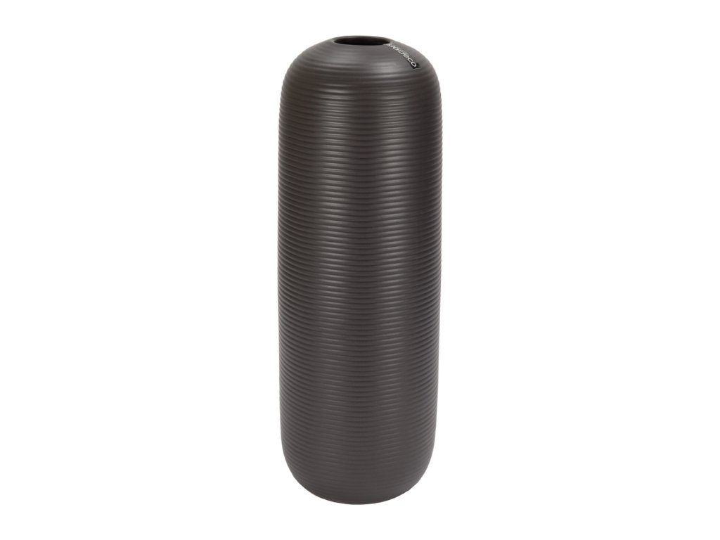 Vysoká keramická váza v tmavě hnědém odstínu s jemnou horizontální strukturou působí moderně a elegantně. Štíhlý válcovitý tvar z ní dělá výrazný solitér do každého interiéru.