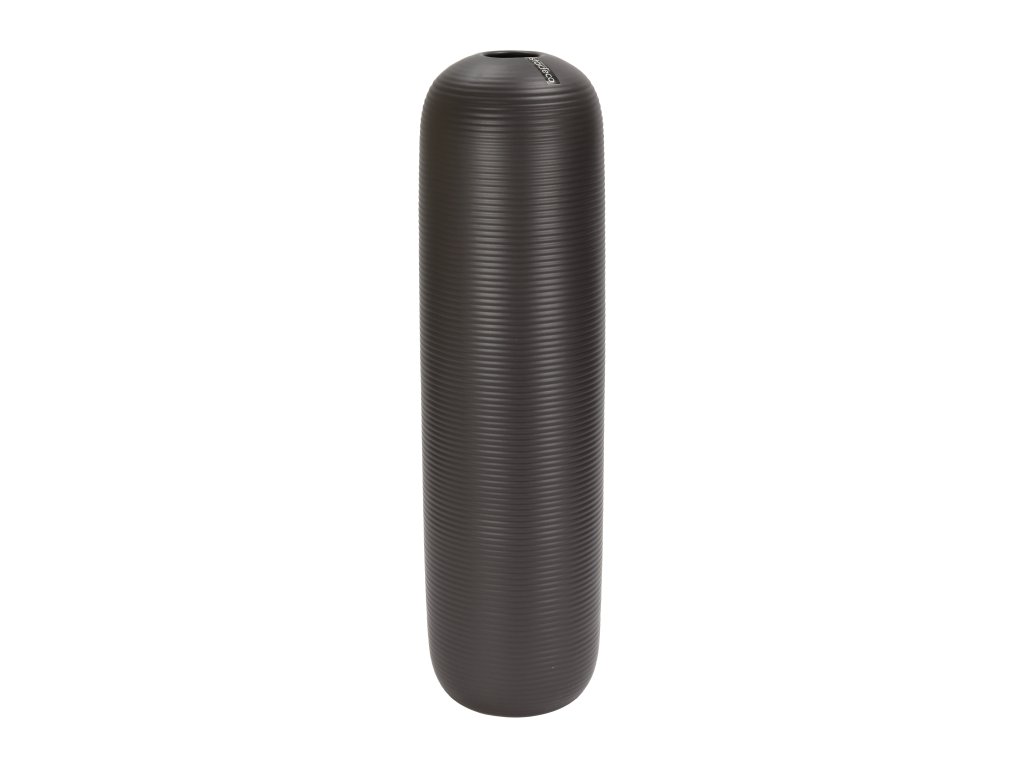 Vysoká keramická váza v tmavě hnědém odstínu zaujme elegantním válcovým tvarem a jemným horizontálním žebrováním. Výrazný solitérní doplněk pro moderní i přírodní interiéry.
