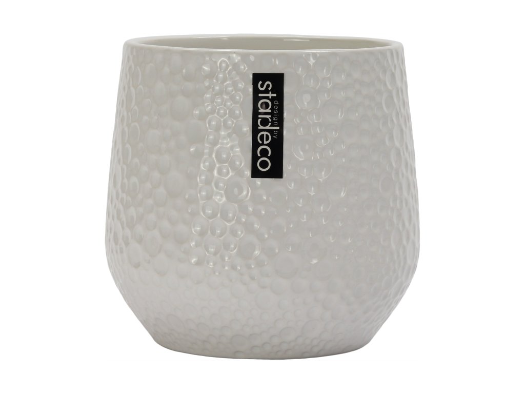 Keramický květináč o výšce 12 cm zaujme na první pohled svým originálním reliéfním povrchem tvořeným drobnými vystouplými kruhy, které připomínají kapky vody. Tento jemný 3D efekt dodává květináči hloubku, strukturu a luxusnější vzhled.
