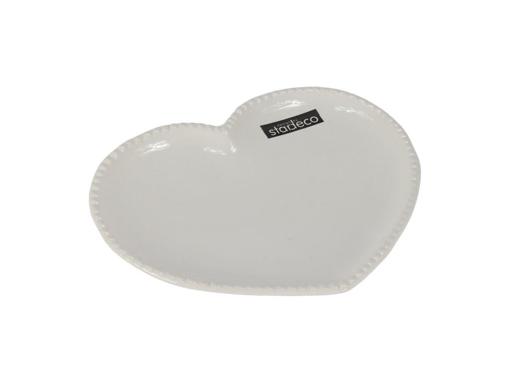 Keramický tác v bílé barvě o velikosti 20 cm v elegantním tvaru srdce. Jemný dekor po obvodu dodává romantický a zároveň nadčasový vzhled.