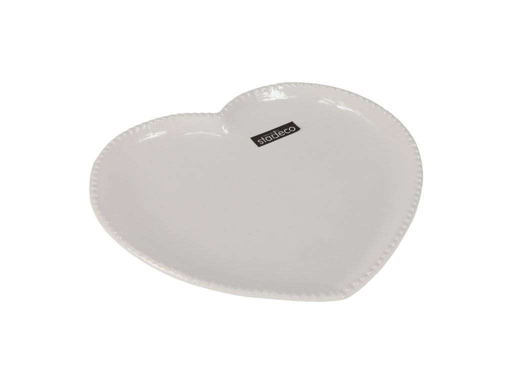 Keramický tác v bílé barvě o velikosti 25 cm v elegantním tvaru srdce. Jemný dekor po obvodu dodává romantický a zároveň nadčasový vzhled.
