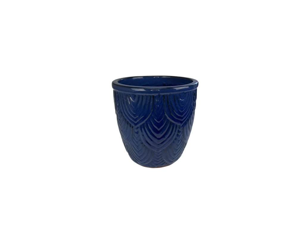 Květináč keramický glazovaný LEAF 24x21 cm tm.modrý