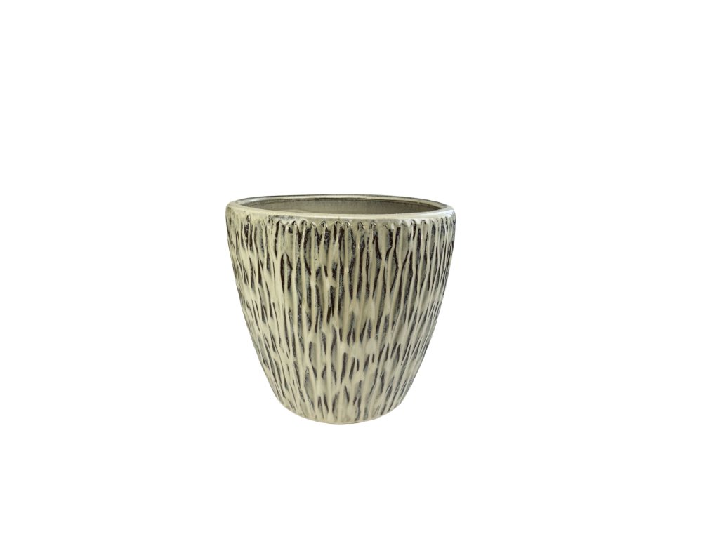 Dekorativní keramický květináč STRIA v krémové barvě s výraznou strukturovanou glazurou. Elegantní doplněk, který krásně zvýrazní pokojové rostliny.