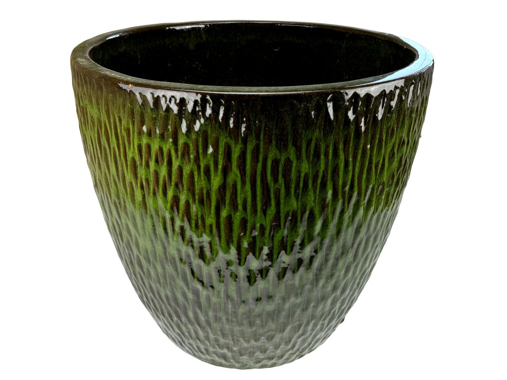 Květináč keramický glazovaný STRIA 46x42 cm tm.zelený