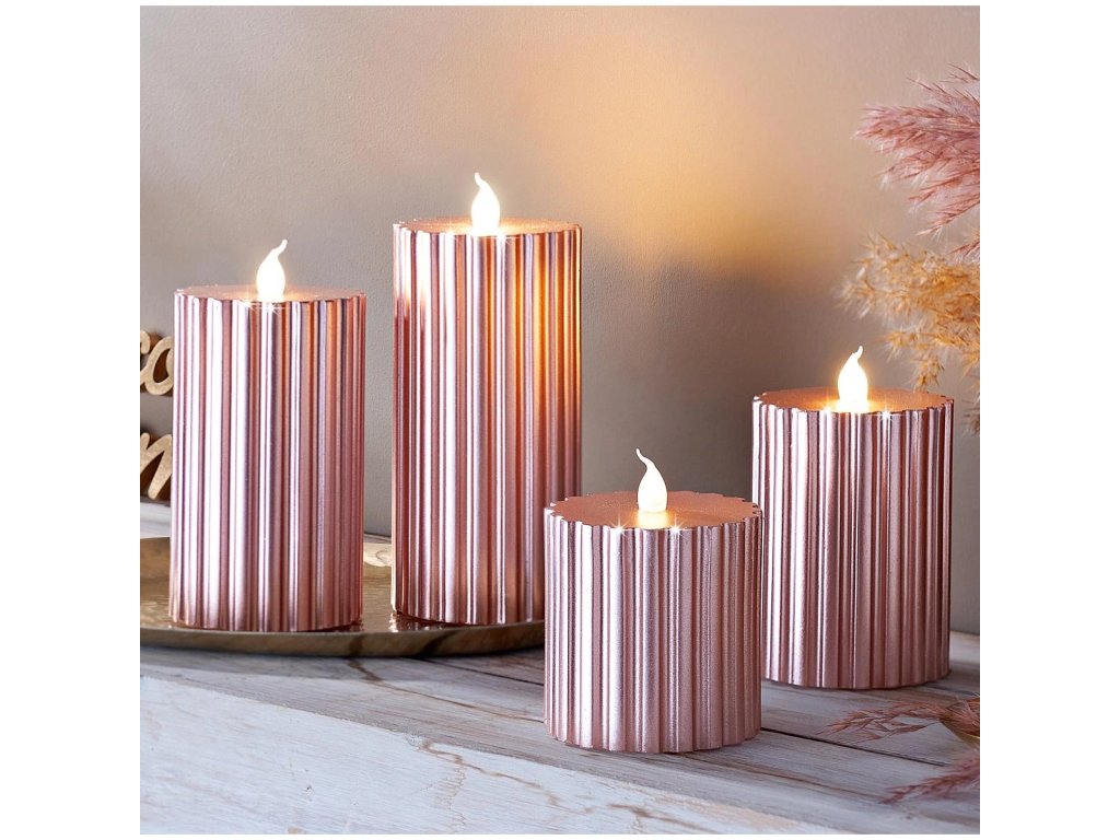 LED svíčky růžové metalické - postupka set 4 ks, vel.15cm,12cm,10cm, 8cm