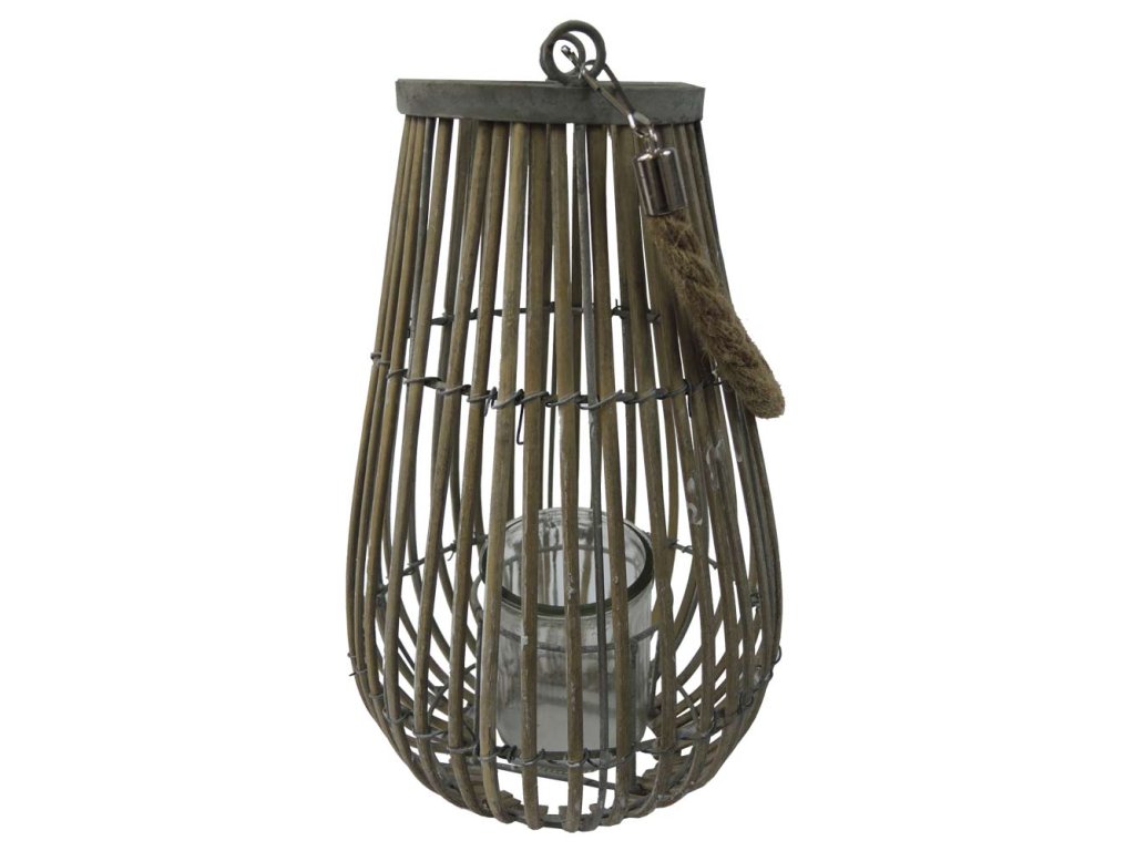 Dekorativní lucerna o výšce 30 cm je vyrobena z přírodního proutí, které je pevně spojeno kovovými prvky. Svislé proutěné lamely vytvářejí vzdušnou konstrukci, díky níž světlo svíčky krásně prostupuje do prostoru a vytváří jemnou hru stínů.