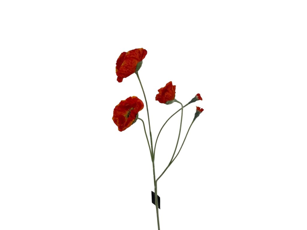Umělá květina mák (Papaver) v oranžovo-červené barvě o délce 67 cm. Lehká a vzdušná dekorace s typickými mačkanými okvětními lístky, která dodá aranžmá romantický a přirozený vzhled.