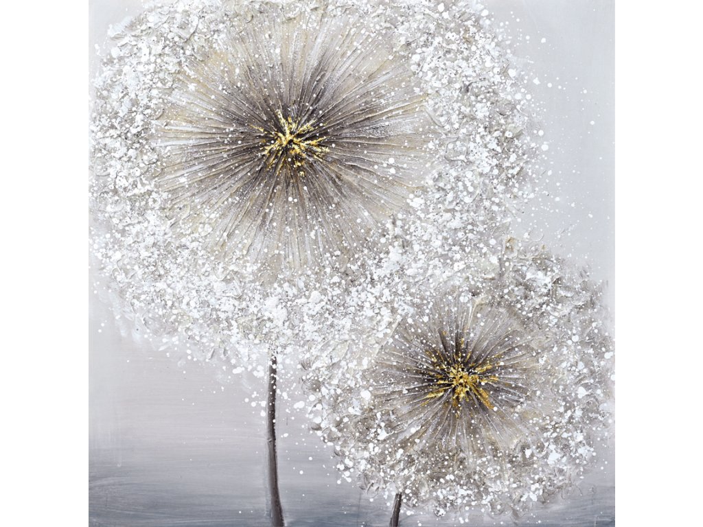 Obraz o rozměrech 80 × 80 cm přináší do interiéru lehkost, klid a nadčasovou eleganci. Motiv rozkvetlých pampelišek je zpracován v jemných tónech bílé, šedé a béžové, které vytvářejí harmonickou a uklidňující atmosféru.