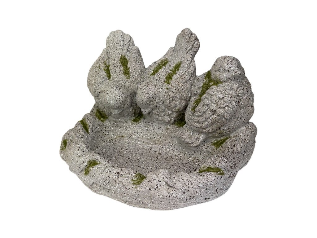 Pítko pro ptáčky magnesium, dekor kámen mech s třemi figurkami ptáčků 37x33x24 cm