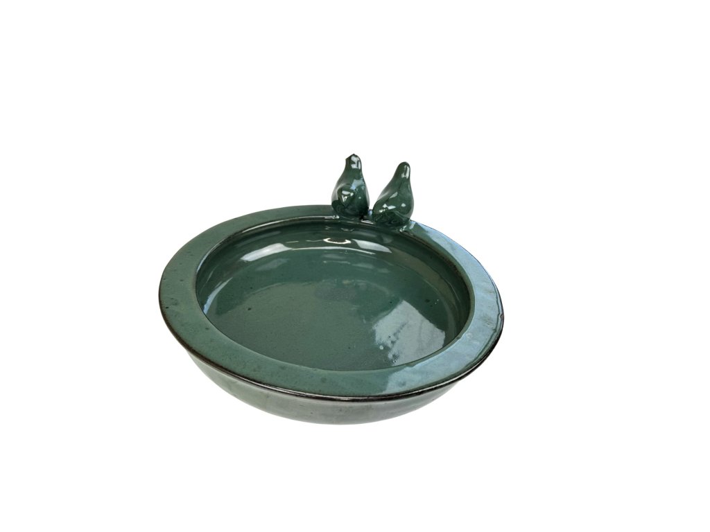 Pítko s ptáčky glazované pr. 28 cm v. 12 cm barva tm. zelená