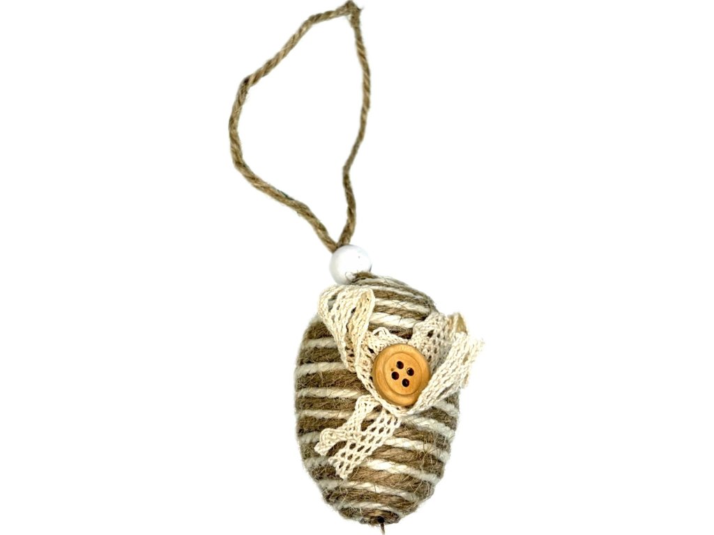 Přírodní závěsné vajíčko 6,5x4,5 cm rustic juta