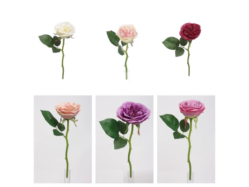 Umělá anglická růže s realistickým vzhledem je elegantní květina s romantickým nádechem, ideální pro svatební i celoroční dekorace. Díky plnému květu a jemným barevným odstínům působí velmi přirozeně.