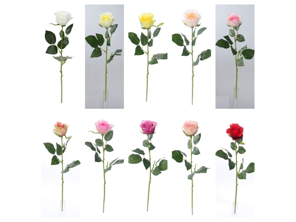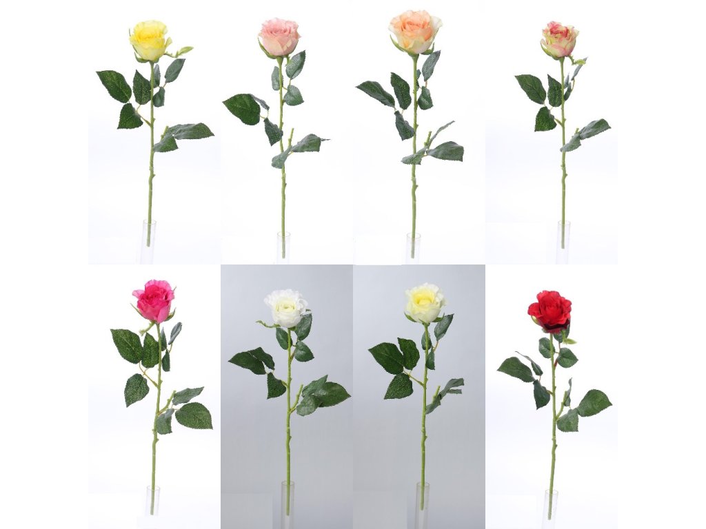 Dekorativní umělá růže na štíhlém stonku je nadčasovým doplňkem pro jemná i slavnostní aranžmá. Elegantní květ v mixu barev krásně oživí interiér po celý rok.