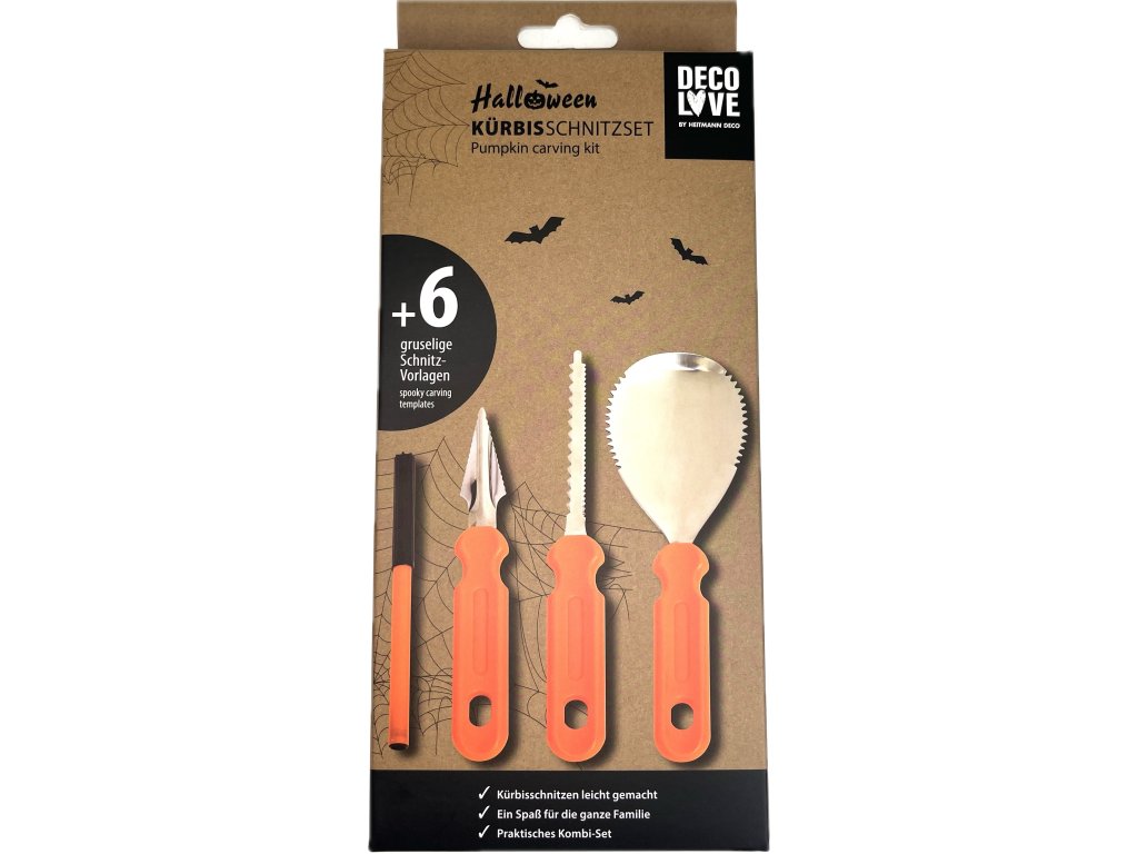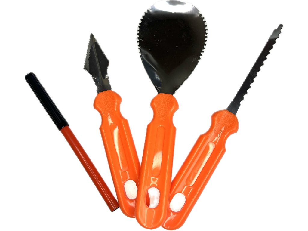Sada na vyřezávání dýní v bal. 4 ks, +6 ks papírových návrhů jak vyřezávat