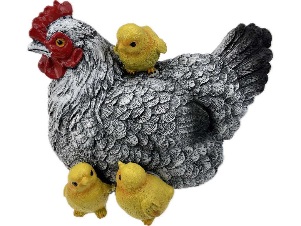 Slepice bílá s kuřátky polyresin 24x20x21 cm