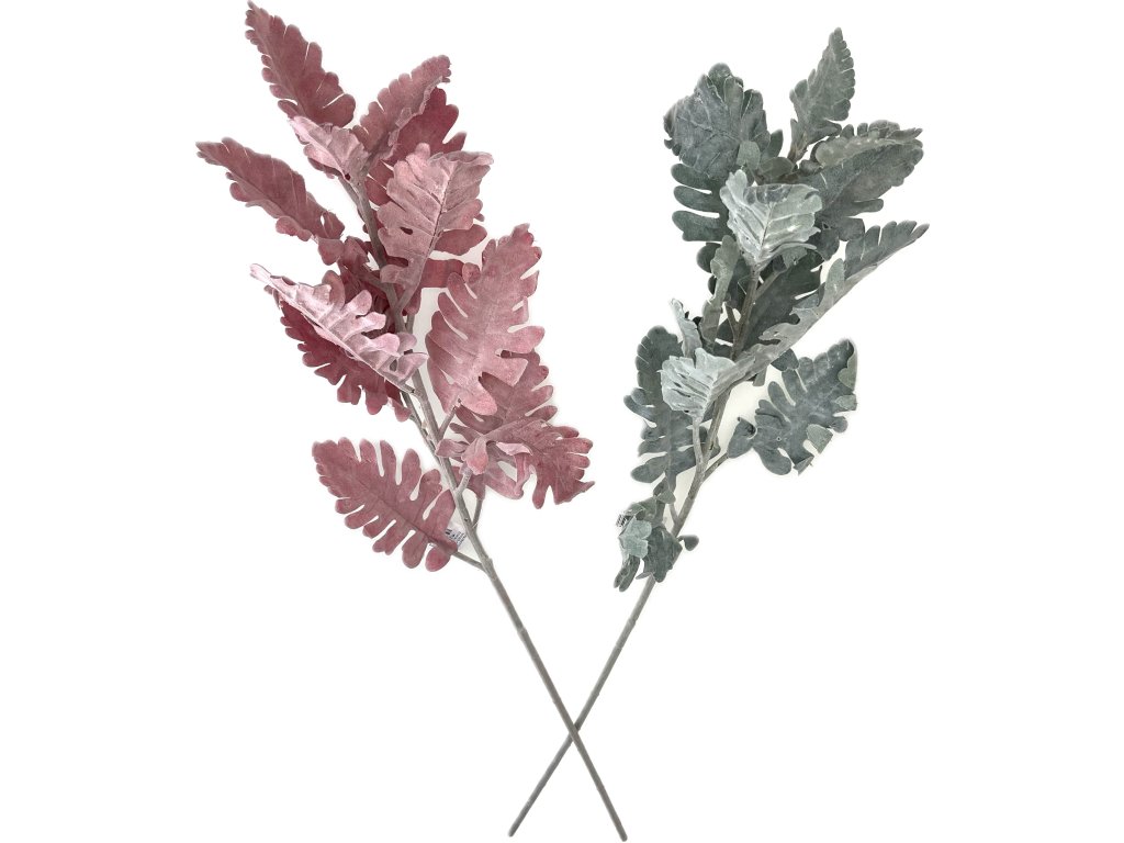 Luxusní větev ojíněná 75 cm vysoká se 13 listy, zeleno - červená