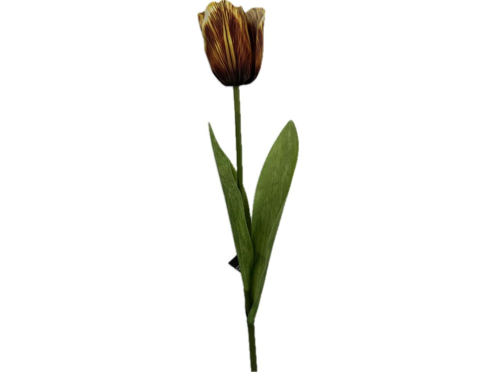 Pevný stonek doplňují dlouhé zelené listy, které podtrhují elegantní siluetu květiny. Tulipán se skvěle hodí jako samostatná dekorace do minimalistické vázy, ale také jako kontrastní prvek do jarních i celoročních květinových kompozic.