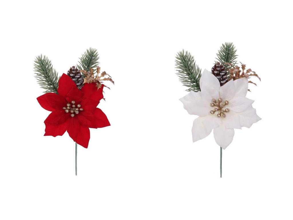 Vánoční hvězda / Poinsettia s větvičkou 20 cm červená + bílá