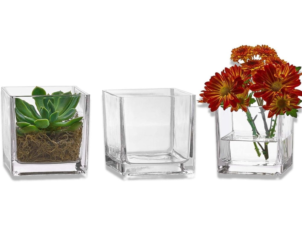 Váza silné sklo čtverec 8x8x8 cm