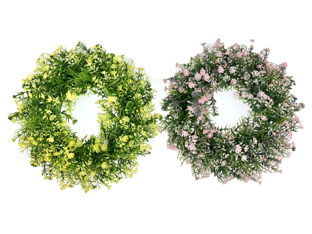 Věnec plast pr.24 cm, růžová / žlutá kvítka