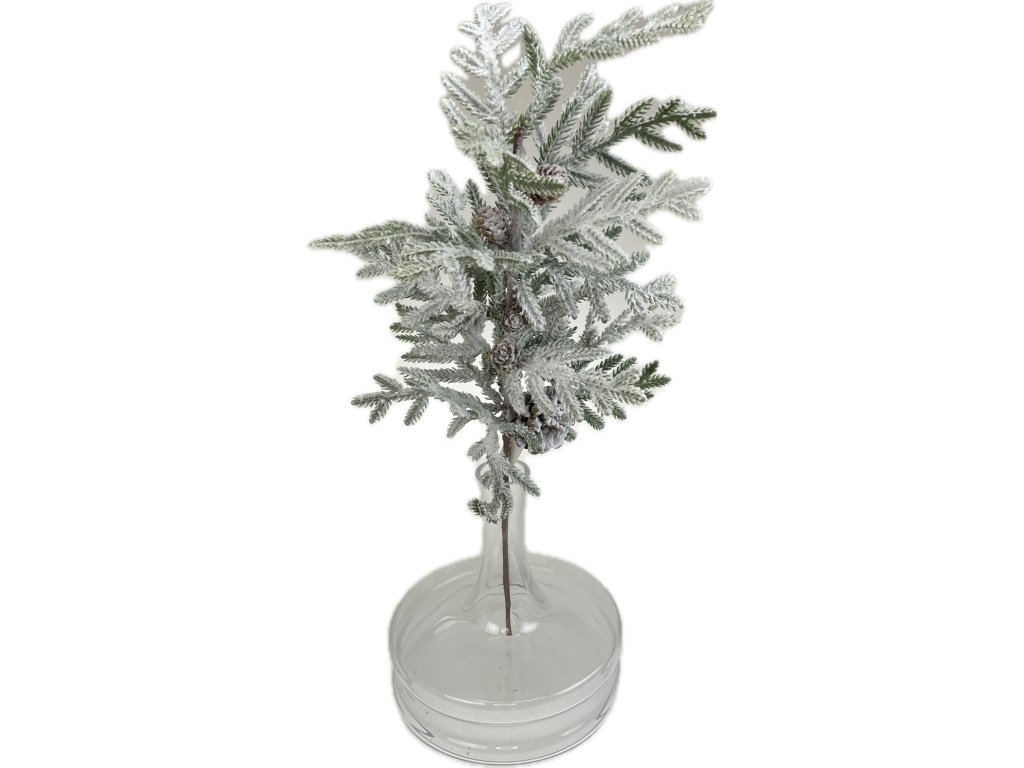 Větvička jedle 3D zasněžená se šiškou 60 cm