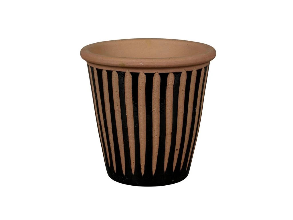 Zahradní keramický květináč Milano v kombinaci černé a přírodní barvy zaujme svým výrazným vertikálním dekorem a elegantním kontrastem. Díky svému modernímu, ale zároveň přírodnímu vzhledu se skvěle hodí do různých typů exteriérů.