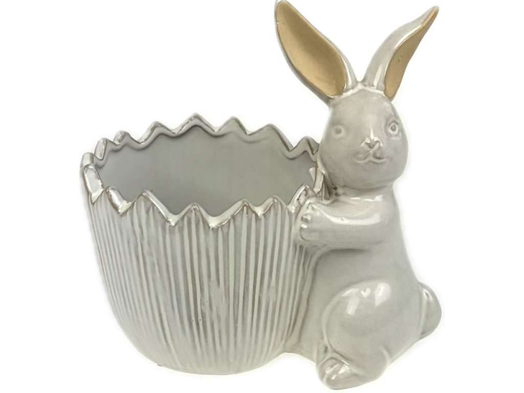 Zajíček s miskou skořápka porcelán na osázení 17x11x15 cm