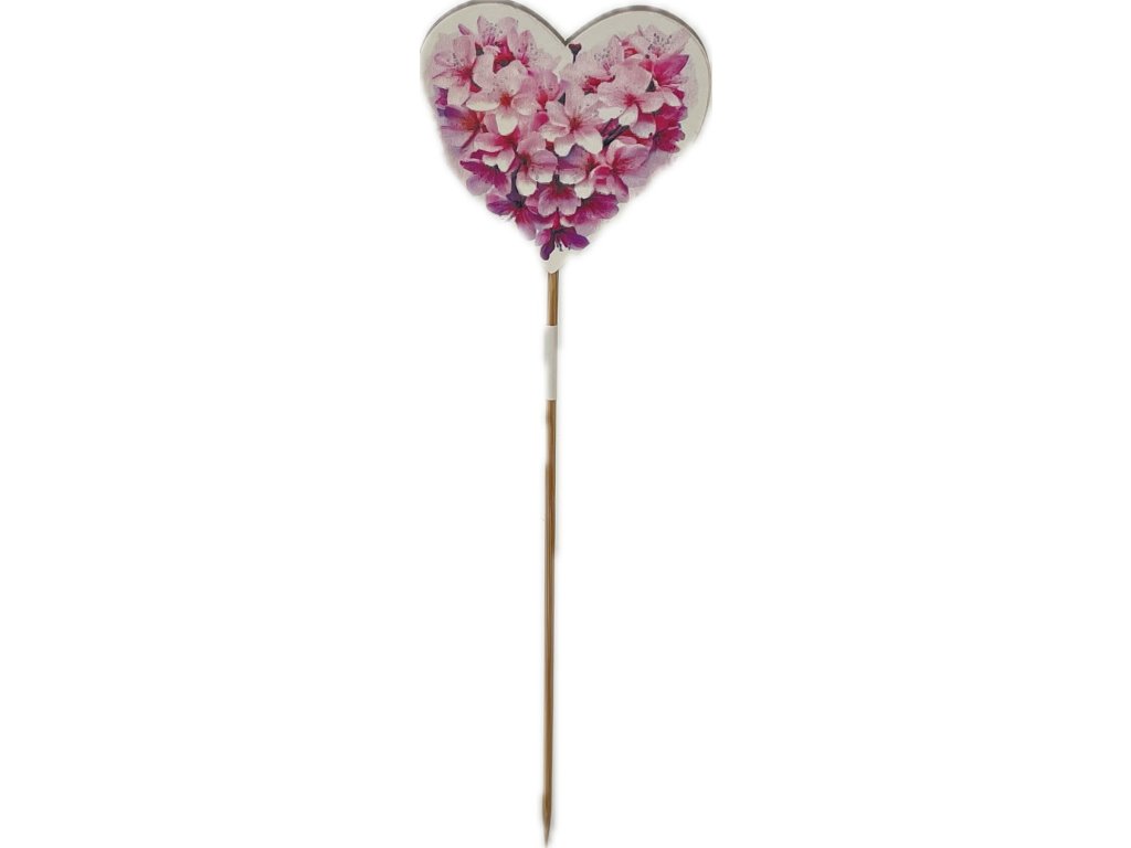 Zápich dřevo srdce 23x7 cm růžové květy